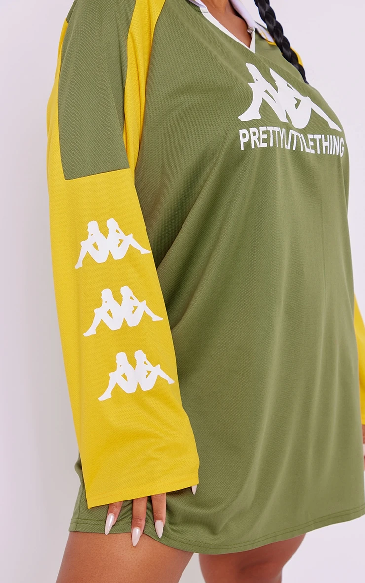 Add a little edge to your off-duty/weekend wardrobe with this kappa plus khaki varsity t shirt dress. This unreal dress will have you making a statement this season. Brought to you in a khaki material in a varsity design, what’s not to love doll? With an oversized fit, this t shirt vest is a must have to add a little edge to your wardrobe. Team with some comfy trainers and your go-to accessories, it’s a yes from us.