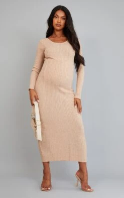 Maternity Sage Green Plunge Ruched Contour Jersey Midi Dress