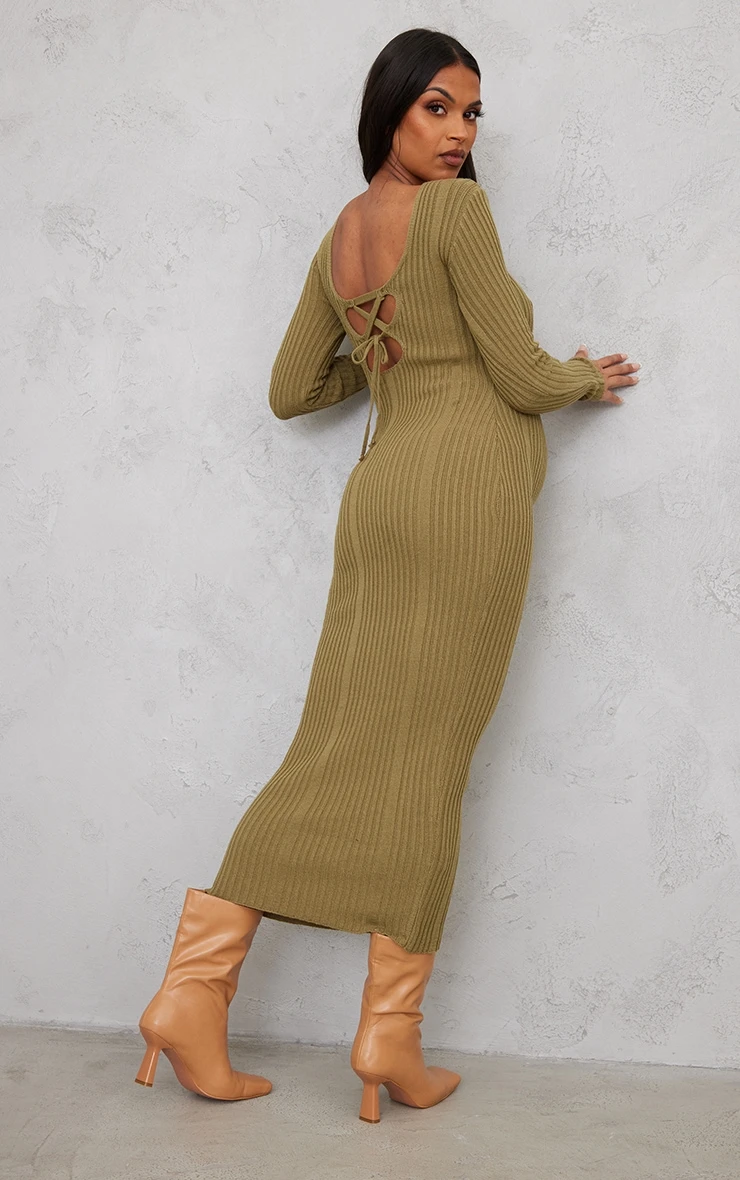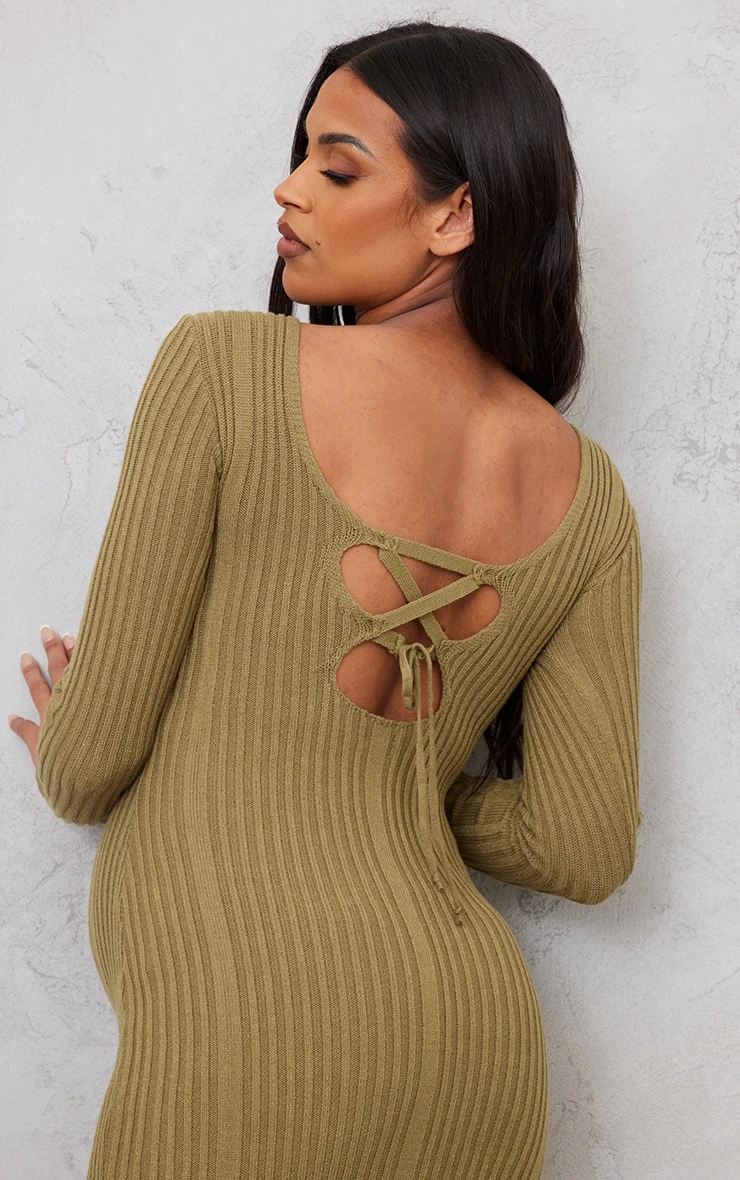 Make heads turn with this maternity khaki knitted midaxi tie back bodycon dress. This dress features a khaki knit material for a luxe look that will keep you comfy this season. With a midaxi length and a tie back design, this dress will be your new go-to. Why not swap your usual evening dress, with this one doll? Team with some heeled ankle boots and a statement clutch bag for a finished look we are obsessing over.