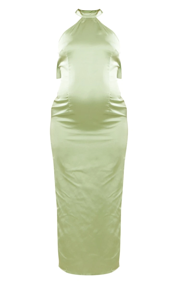 Get ready to show off your bump with this figure-worshipping maternity sage satin maxi dress. This maxi dress is brought to you in a sage satin material that is bringing all the luxe vibes this season. With a maxi length, you won’t be able to resist. Team with some clear eels and your fave accessories to have heads turning for all the right reasons, it’s a yes from us.