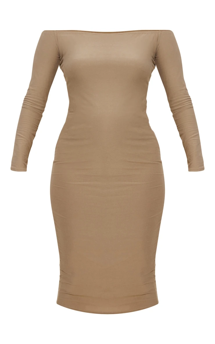 Make them stop and stare in this maternity taupe off the shoulder soft touch midi dress. This dress is brought to you in a taupe soft touch material that will have you feeling luxe this season. With an off the shoulder design and a midi length, you wont be able to resist doll. This dress is perfect for those plans with the dolls. Why not team with some clear heels and your fave accessories to feel confident this season.