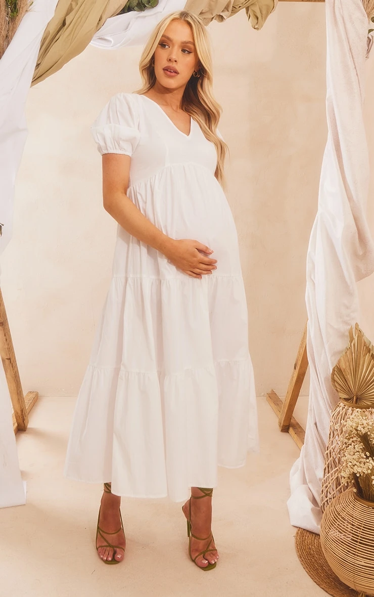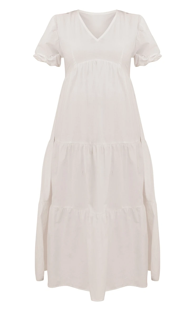 Your weekend wardrobe dilemmas are finally solved with this dress doll. Featuring a white cotton material with a tiered design and a maxi length, we’re obsessed. Style with heels and accessories for the perfect new season fit.