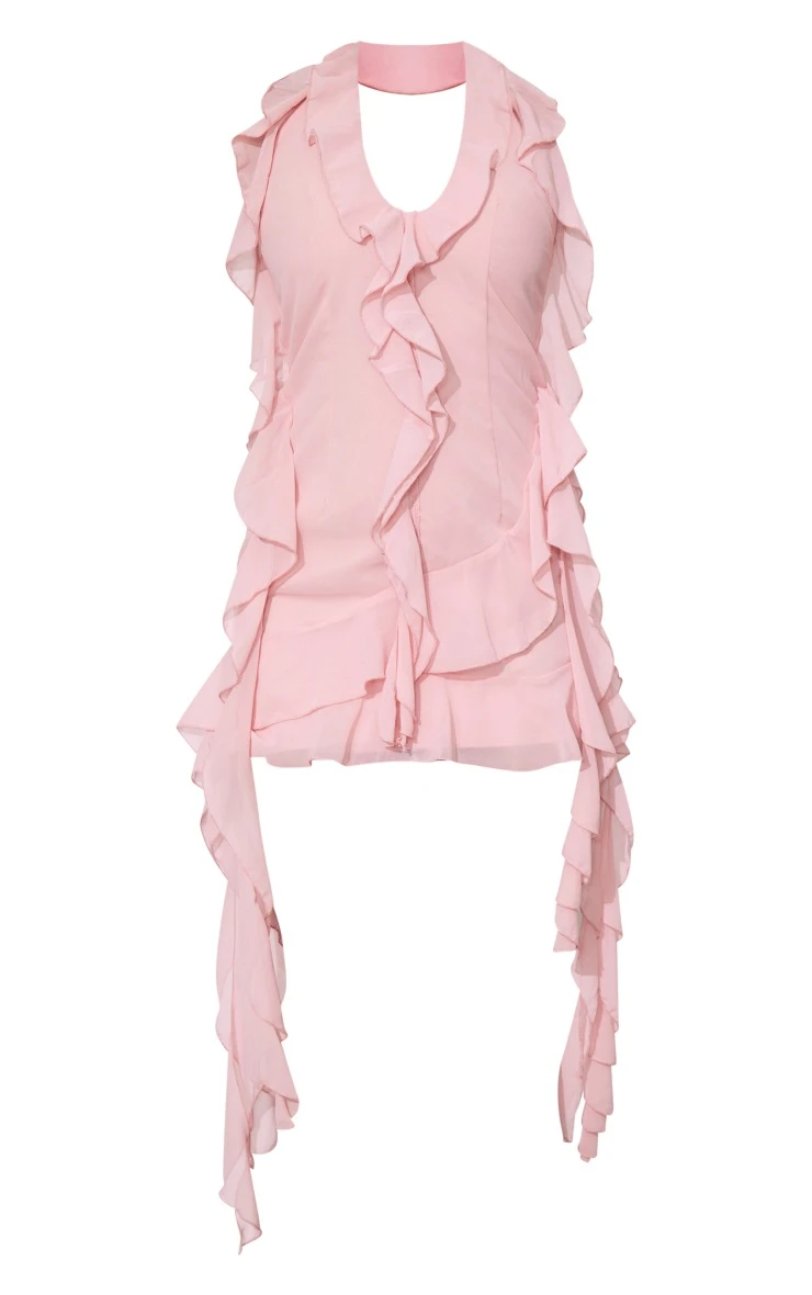 Give your wardrobe a seriously chic update with this petite baby pink halter neck frilled mini dress. This dress is brought to you in a baby pink material for a feminine look that will have you feeling confident all season long. With a halterneck design and frilled detailing, this insta-worthy look is a must-have in your wardrobe. Style with some clear heels and your fave accessories to complete this effortlessly glam look.