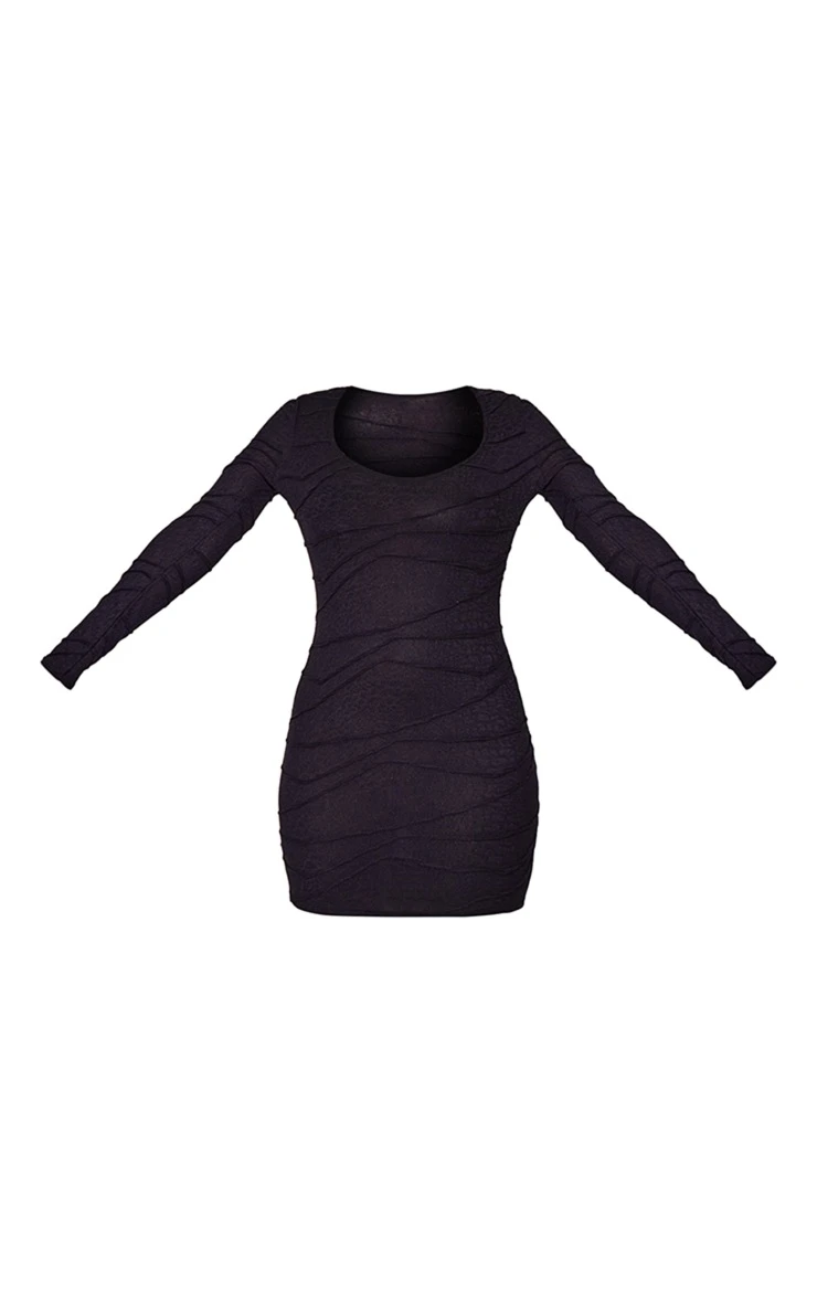 Keep your style game strong with this petite black textured scoop neck long sleeve bodycon dress. This dress is made from a black hue textured material for a look that will earn you some real styling points. With a scoop neck, this bodycon dress will show off your shape in all the right places. Style with some clear heels to complete the look everyone is obsessing over.