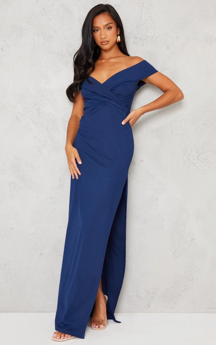This dress is a must-have for those upcoming occasions doll. Featuring a navy material with a folded bardot neckline, an extreme side split and a maxi length, we’re obsessed. Pair with clear heels and gold accessories for the ultimate glam finish.