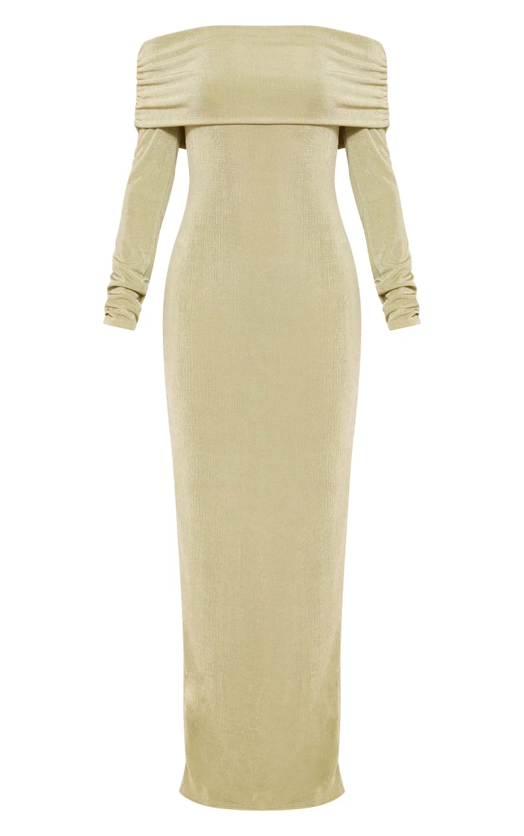 Got a special occasion coming up doll? Then we have the dreamiest dress perfect for you. This petite olive acetate slinky bardot long sleeve maxi dress is sure to gain all the compliments with its figure-hugging fit and simple design. It is made from an olive acetate slinky material and features a bardot neckline with long sleeves which gives you that chic finish. Simply pair with clear heels and gold accessories for a glam finish worthy of any occasion.