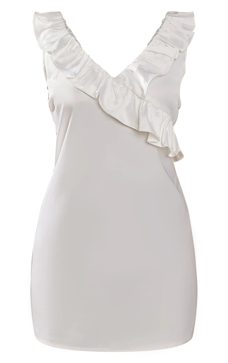Get your glam on with this petite white frilled satin mini dress. Made from a white satin material with filled detailing and a mini length, you’re sure to have all eyes on you. When the weekend calls so does this mini dress doll. So what are you waiting for? Shop the look and opt for your dreamy high heels and gold accessories. It’s a yes from us.