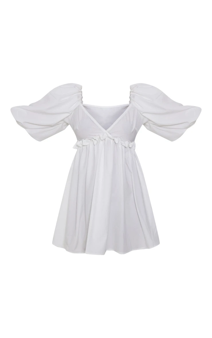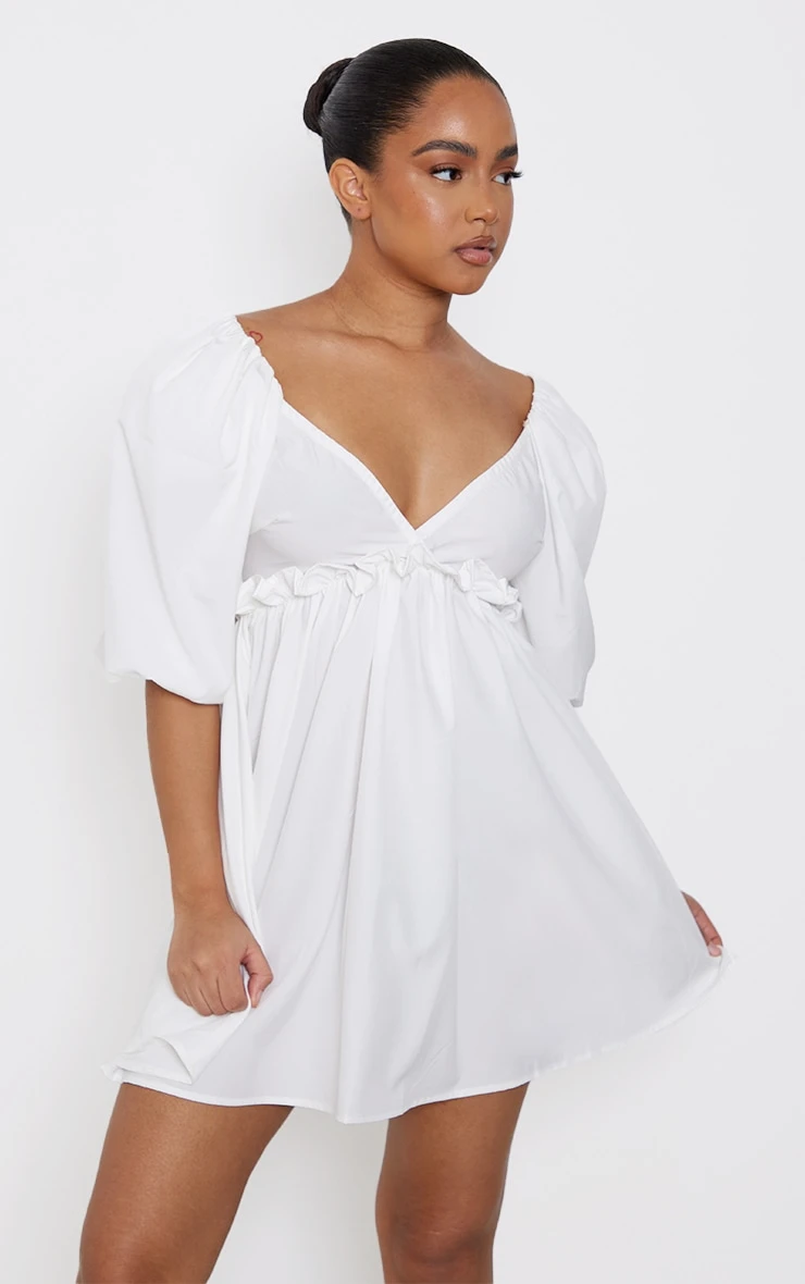 Take on the new season in styling with this petite white frilled shoulder puff dress. We know it’s a hot topic right now. Made using a white hue material with frilled detailing, puff shoulder and a flattering fit that will compliment your shape, what more could you ask for? Wear with gold hue accessories, a shoulder bag and platform sandals for a look that will get everyone talking.