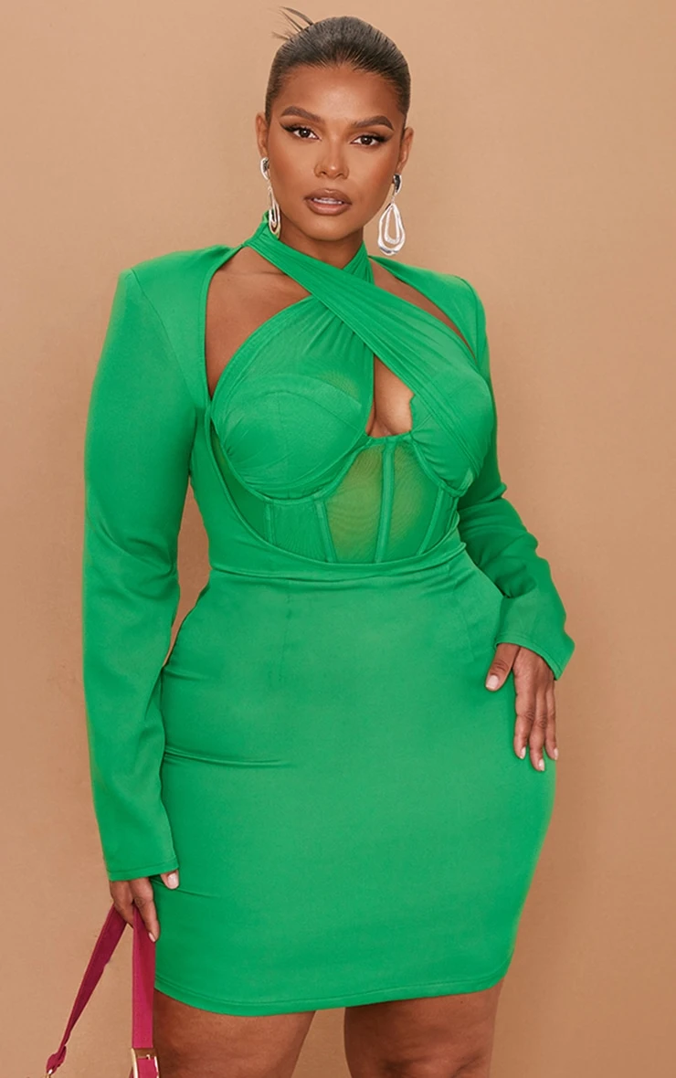 Get ready to make a statement in this bodycon dress. Featuring a bright green material with a cross front design and a bodycon fit. Complete the look with hot pink heels and a matching clutch for a look that will steal the stares.