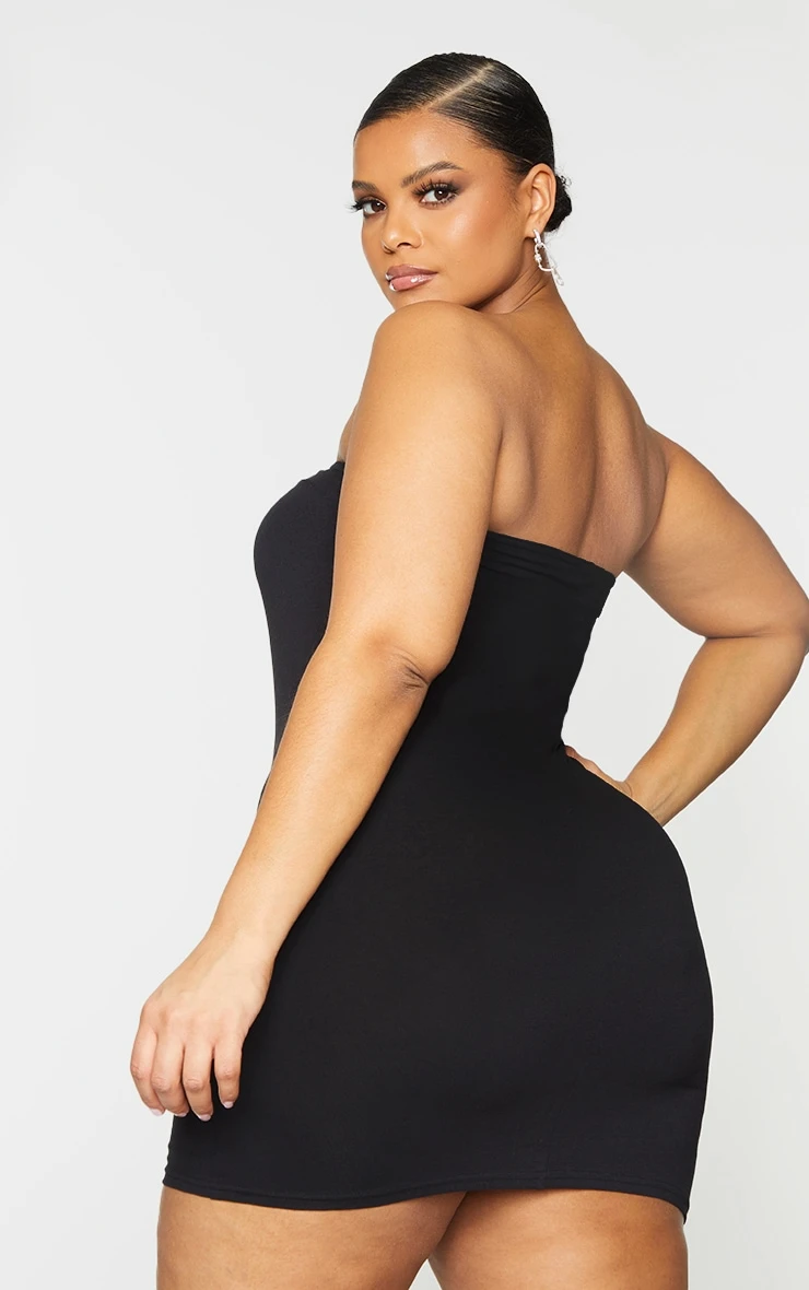 Nail the new season with this must-have dress. Featuring a black jersey material with a bandeau design and a bodycon fit, we are in love. Wear with accessories, high heels and a mini bag to complete the look.