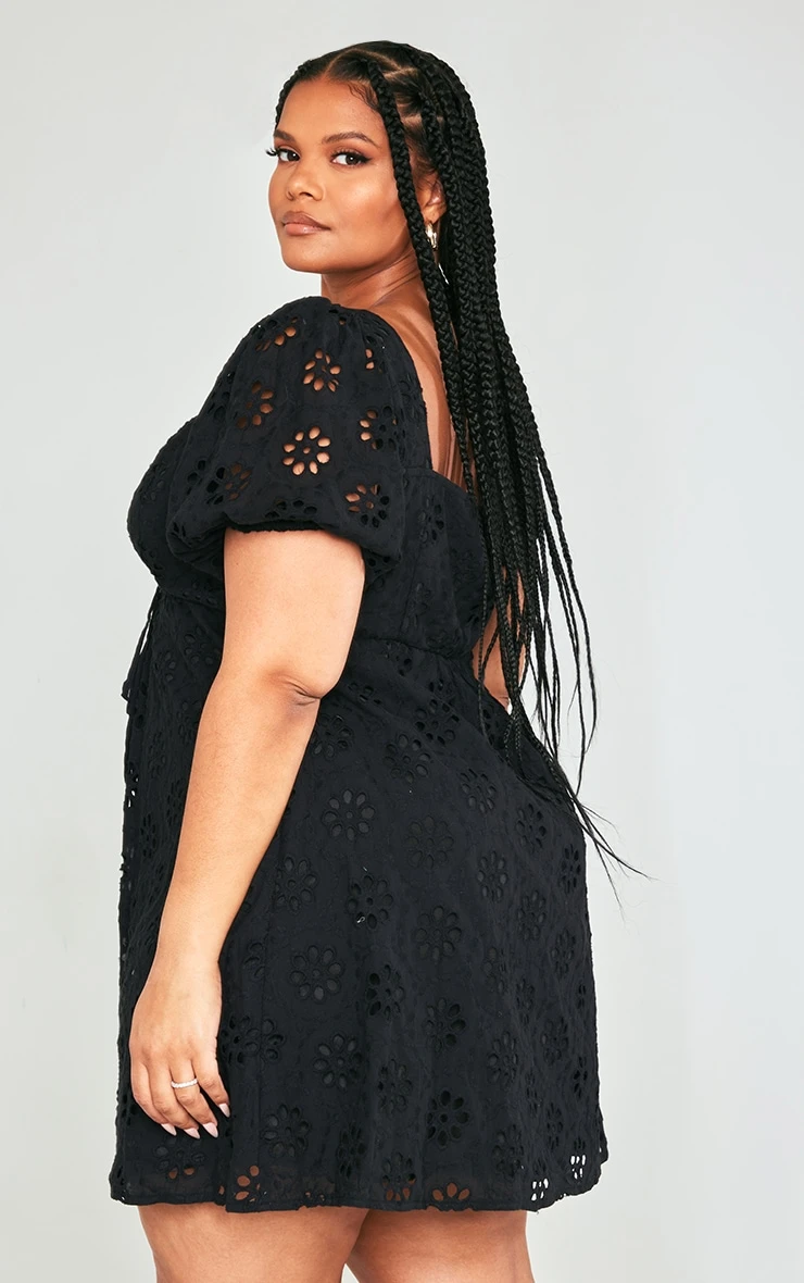 Your new season wardrobe is not complete without this plus black broderie anglaise puff sleeve shift dress. Whatever the occasion this shift dress is sure to be your new go-to for those weekend plans, your next vacay and beyond. Made from a black broderie anglaise material we just can’t get enough of right now and featuring a puff sleeve design, what more could you ask for? Just add heels and simple accessories for a flawless finishing touch, or why not style with sandals for more of a casual vibe.