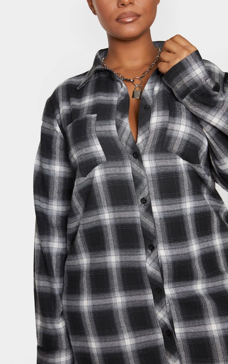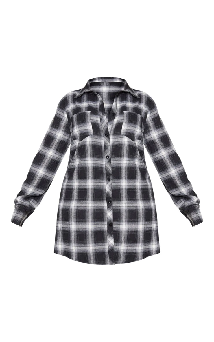 We are loving this shirt dress to elevate your off-duty wardrobe doll. Featuring a black checked material with a button front and an oversized fit, team this with a pair of chunky lace-up boots and some simple accessories to complete the look.