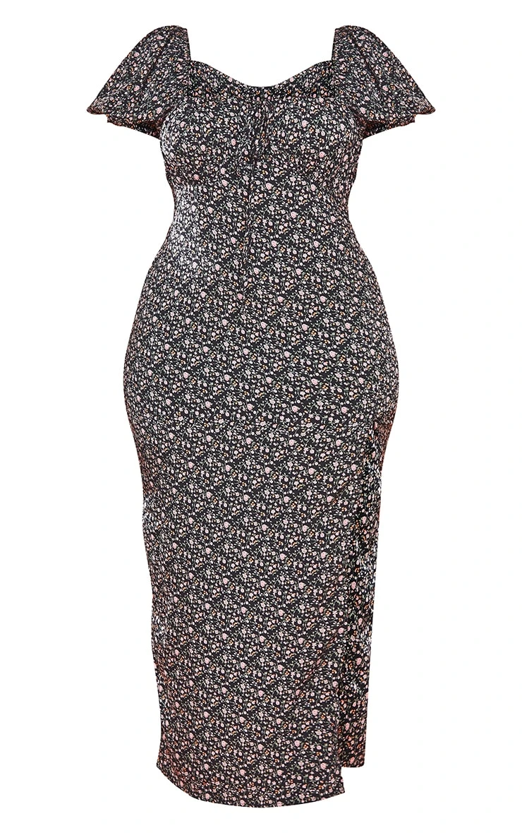 Channel all the chic vibes into your new season wardrobe with this dress. Featuring a black material with a ditsy floral design and a thigh high split. Just add strappy heels and a clutch bag for the perfect weekend-ready look.