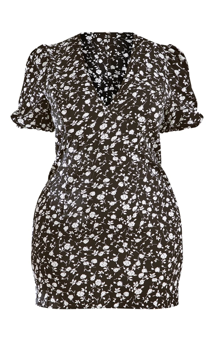 Keep your weekend vibe fiercely feminine with this plus black ditsy floral puff sleeve tea dress. This dress is made from a black hue material with a ditsy floral print for an effortlessly chic look everyone is obsessing over. With a puff sleeve design, this tea dress is a must have this season. Team with some clear heels and your fave hoops to complete the look everyone is talking about.