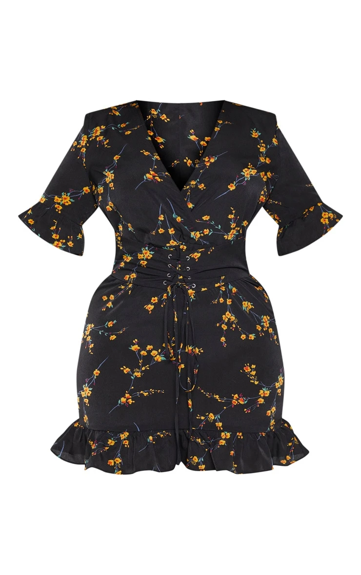 This swing dress is perfect for those weekend brunch plans. Featuring a black material with a floral design, corset detailing and a swing fit, we love this teamed with strappy heels and a pair of statement earrings.