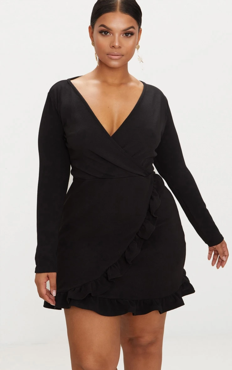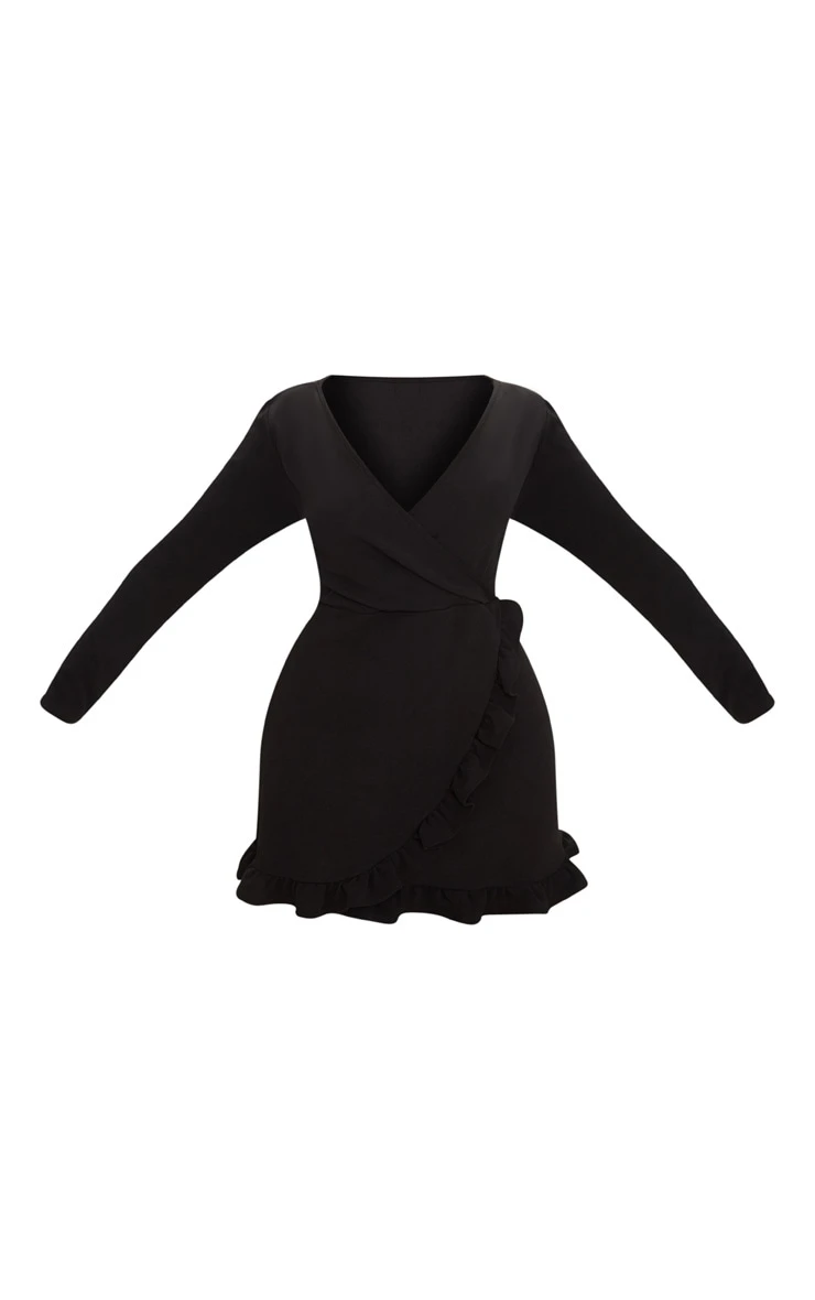 Make a statement in this weekend wardrobe must-have black dress. Featuring a black material in a wrap style with frill detailing and long sleeves, team it with some strappy heels and tassel earrings for a look we’re lovin’.