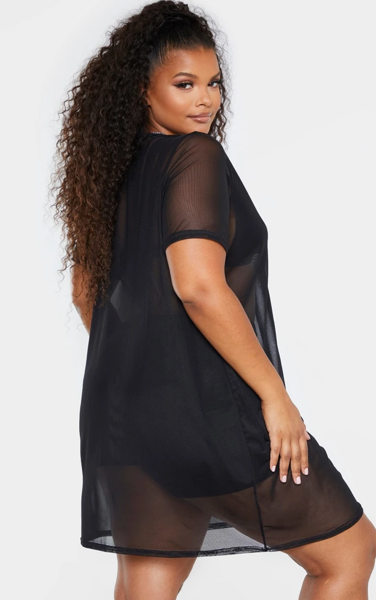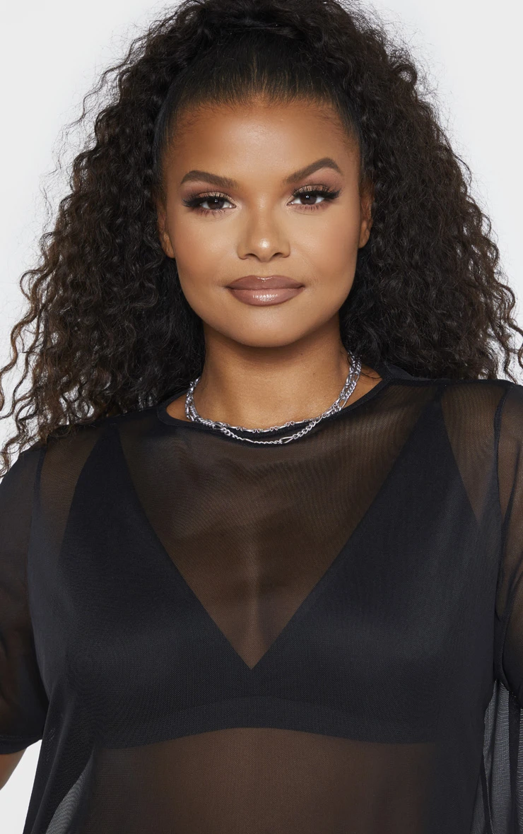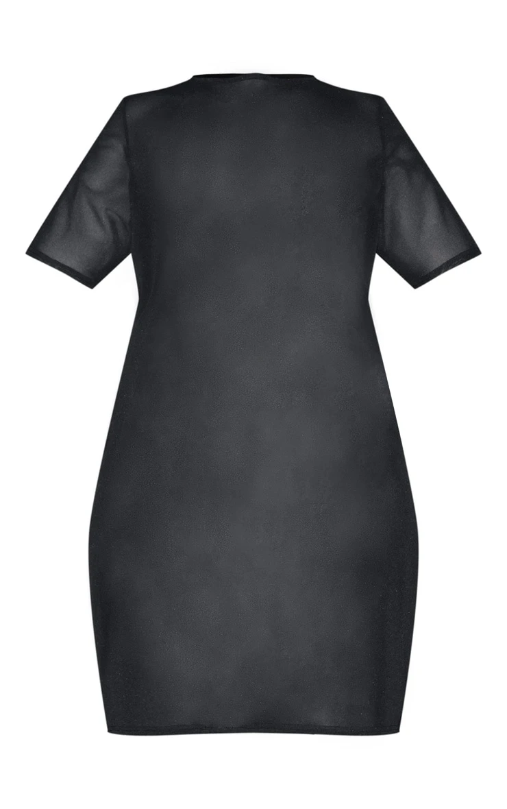 Show off them killer curves in this oh-so-extra T Shirt dress. Featuring a black mesh fabric with crew neck design, short sleeves in a T Shirt style, team it with bandeau crop top and high waisted knickers to complete the look.