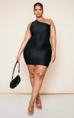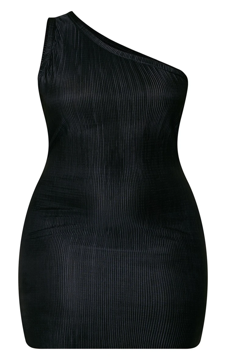 Nail that LBD dress code with this plus black one-shoulder plisse bodycon dress. Made from a black plisse material which is so on trend this season and featuring a one-shoulder design to add some chic vibes to your look. This plus bodycon dress is sure to tick all your boxes and take your look from 0-100. Style effortlessly with clear heels and a shoulder bag for a insta-worthy finish.