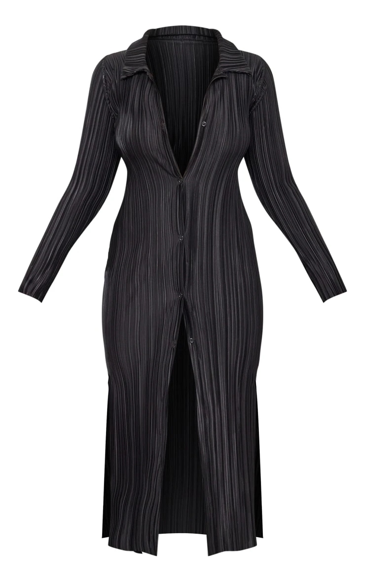 This dress is perfect for your weekend plans doll. Featuring a black plisse material with an oversized fit and a midi length. Wear with heeled boots and a clutch bag for a combo we’re crushing on.