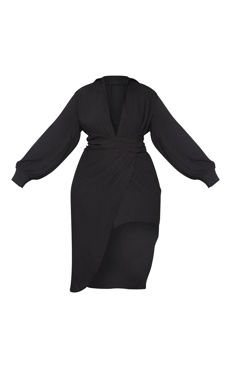Get ready for that upcoming occasion with this dress doll. Featuring a black textured material with a plunging neckline, long sleeves and a wrap over design. Team this with heeled mules and a shoulder bag to complete the look.