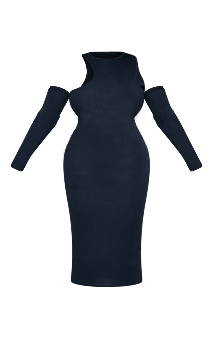 Make some room in your weekend wardrobe for this staple midaxi dress. Featuring a black rib material with a cold shoulder design, an asymmetric neck and a flattering fit, we are obsessed. Wear with high heel and glam accessories for a simple touch of luxe.