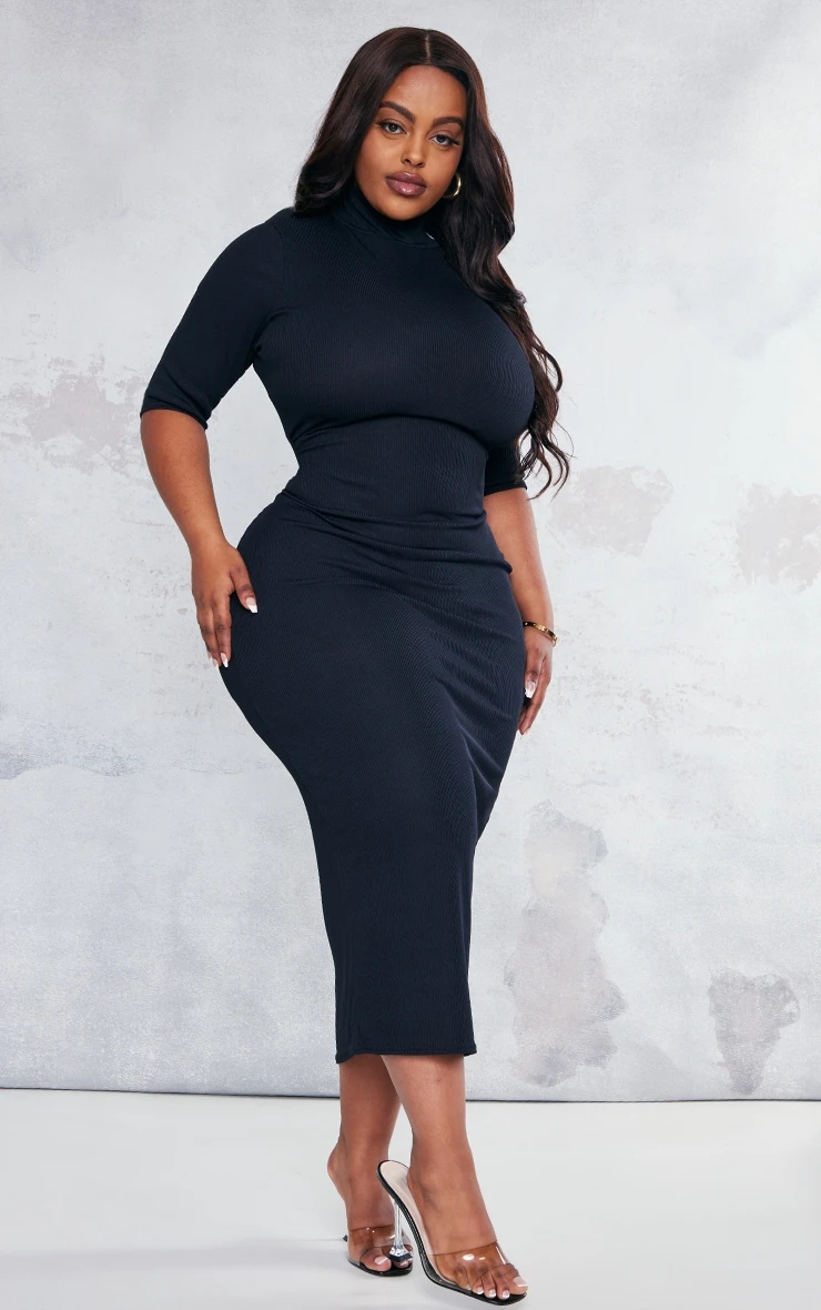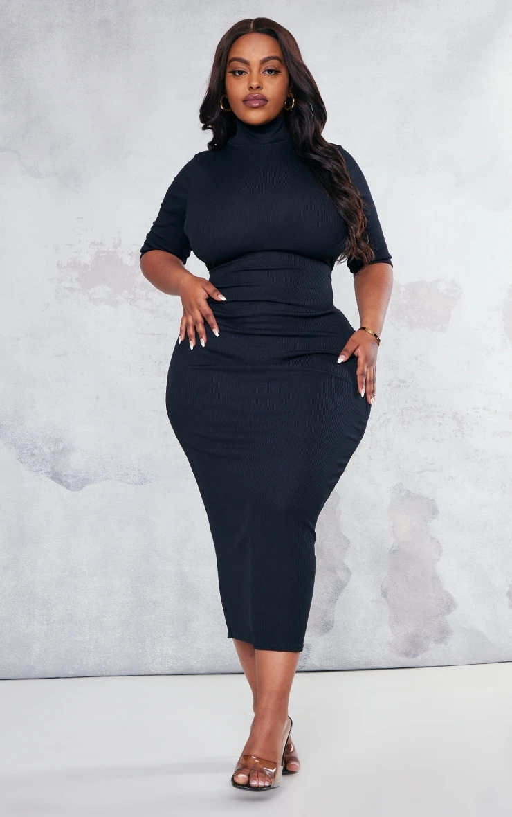 You are set to steal all the stares with this staple midaxi dress. Featuring a black rib material with a high neck, half sleeves and a figure-flattering fit, what more could you need? Team with high heels, accessories and a mini bag for some simple weekend glam.