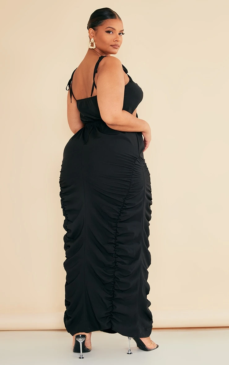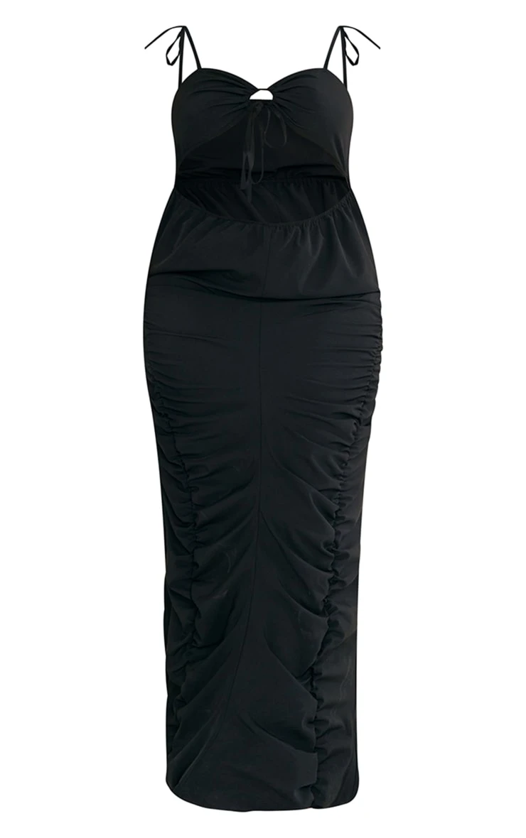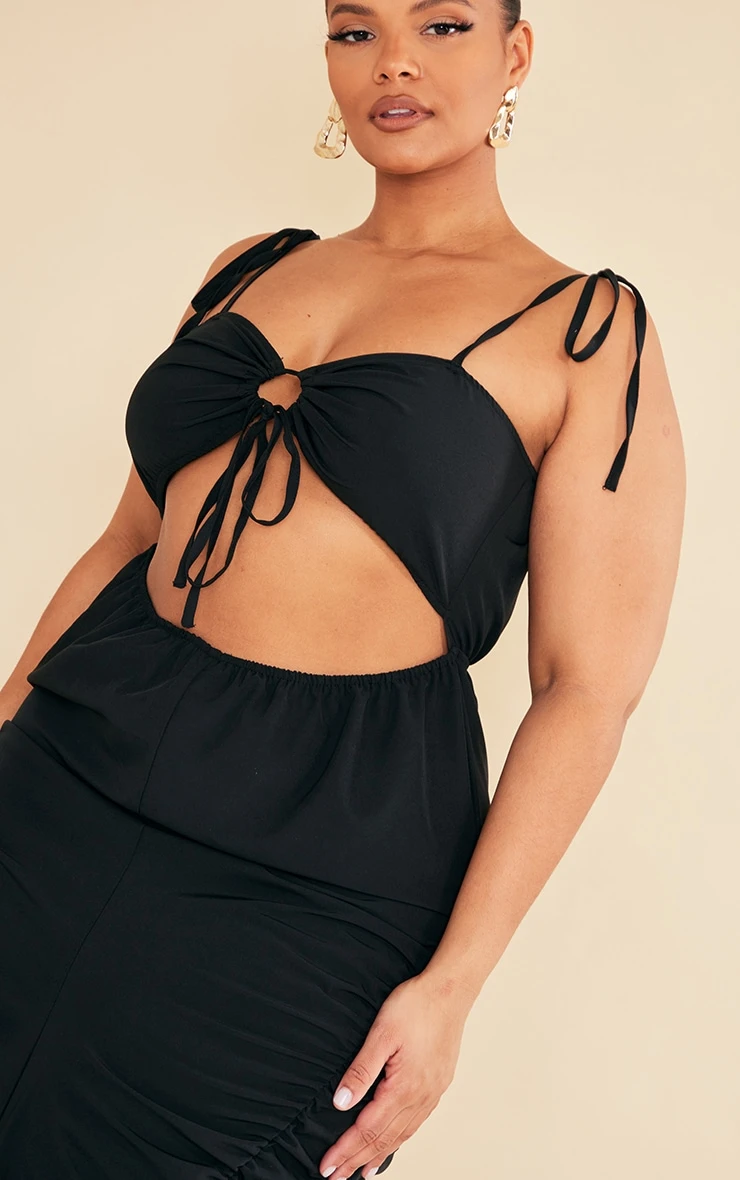 Add some drama into your weekend wardrobe with this plus black ruched cut out midi dress. Brought to you in a black material with ruched detailing, a cut-out design and midi length, we are seriously obsessed. With it’s figure-flattering fit you’re sure to have all eyes on you. To complete the look style with your dreamy high heels and accessories for a date night look with the dolls.