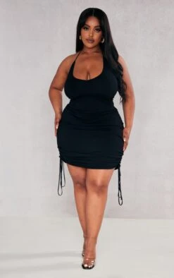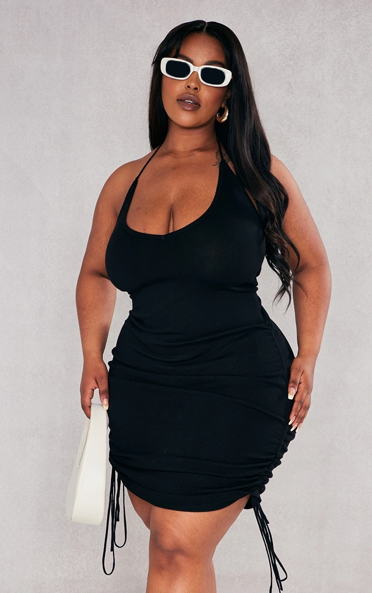 Update your staple little black dress with this plus black ruched V neck strappy knitted dress. Figure-flattering in all thew right places and sure to make you look all kinds of chic, this plus dress is perfect. It is made from a black knitted material with a V neckline and ruched detailing. Style this knitted dress with clear strap heels, a mini bag and statement accessories for a look that will make heads turn doll.