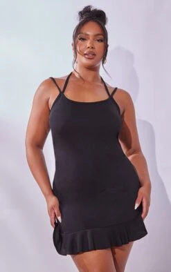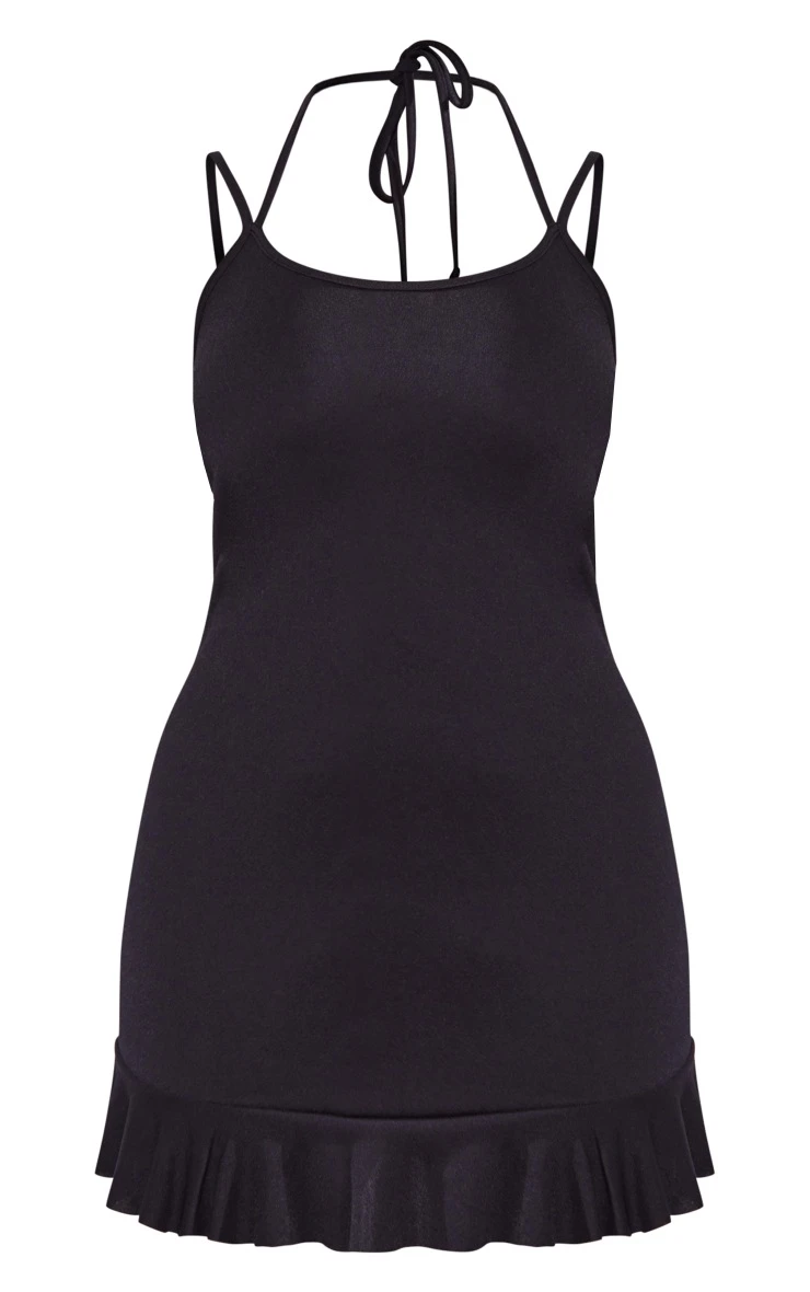 Every doll needs a little black dress in their wardrobe and this plus black ruffle hem tie neck detail bodycon dress is sure to be the answer to all your ‘what to wear’ dilemmas. Made with a black material with ruffle detailing, a tie neck design and a figure-flattering fit, you’re sure to be adding this dreamy piece straight to your basket. Team this plus bodycon dress with slip-on heels and gold hoop earrings for the perfect weekend-ready fit.