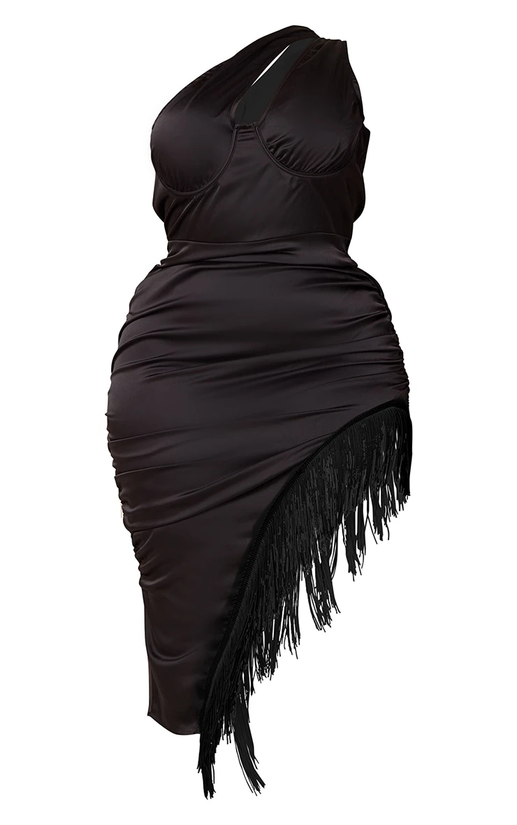 Have all eyes on you in this chic midi dress. Featuring a black satin material with a one shoulder design and ruched side detailing, we’re obsessed. Complete the look with heels, gold hoops and a statement mini bag.