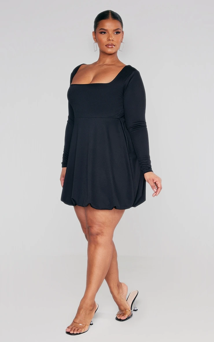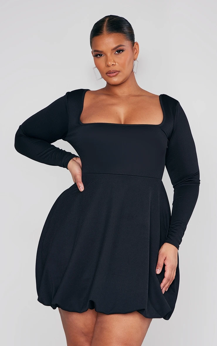 Your weekend look has never been so on-point witht his dress. Featuring a black material with a square neck and a puffball hem, what’s not to love? Pair with clear high heels and your go-to accessories for a look we can’t stop crushing on.