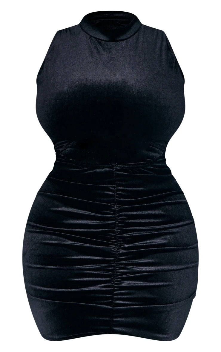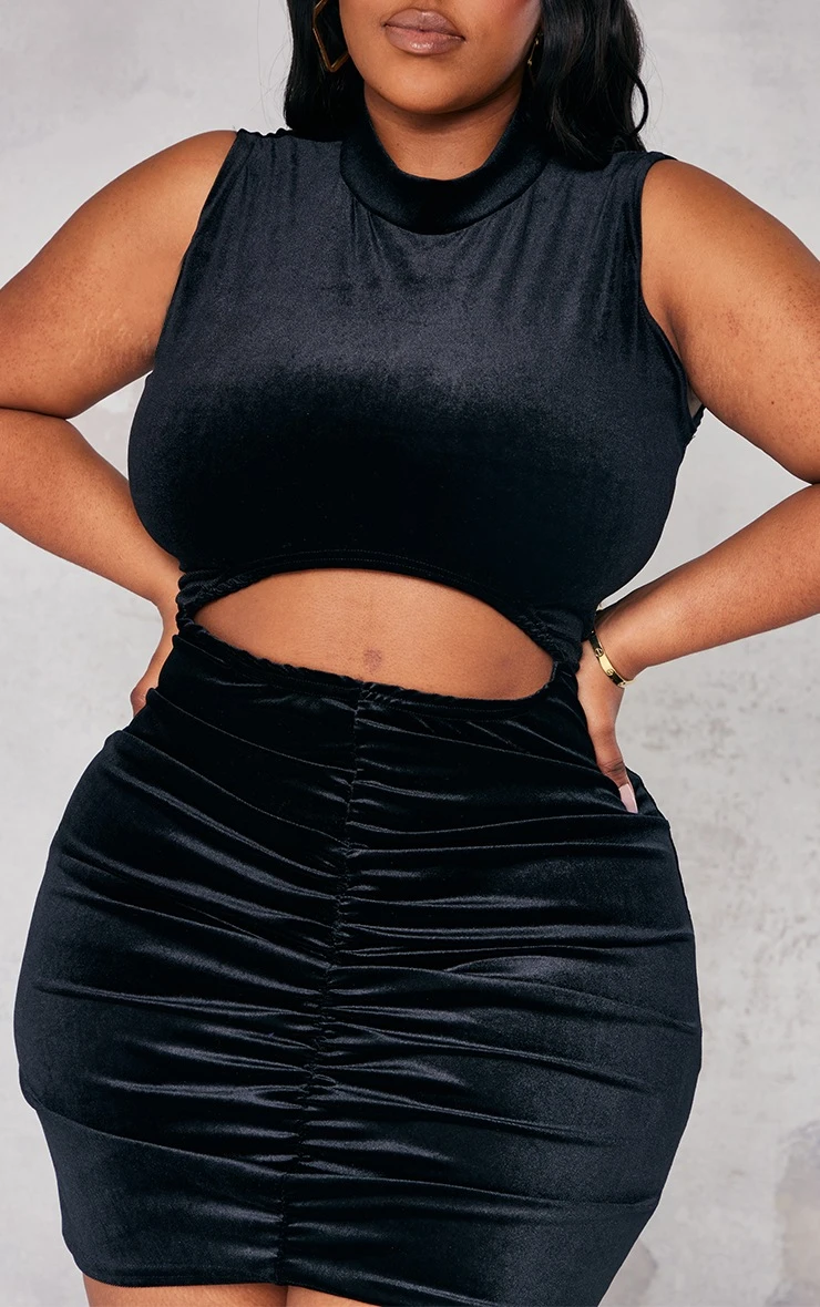 Channel all the luxe vibes into your new season wardrobe with this dress. Featuring a black velvet material with a cut out design and ruched detailing. Team with clear heels and a mini bag for a dreamy date night look.
