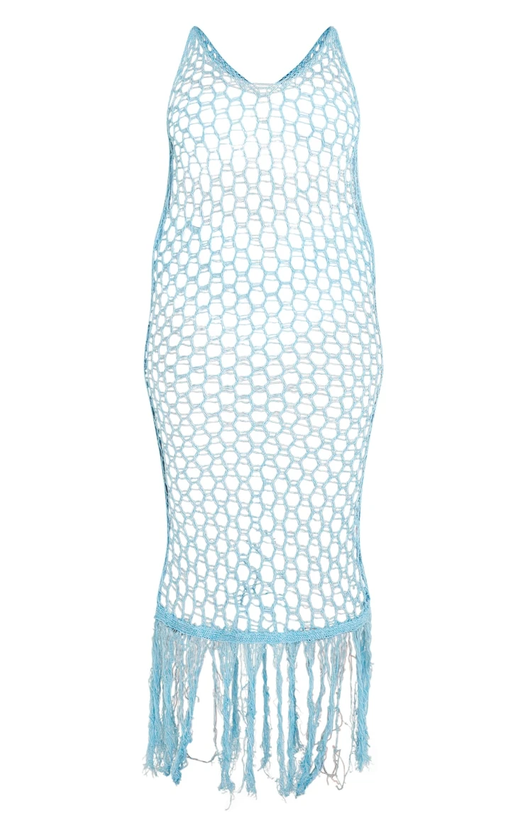 Make them stop and stare in this plus blue fishnet knitted maxi dress. This dress is brought to you in a blue knitted material for a flattering fit we are obsessing over. With a fishnet design and a maxi length, what more could you want? This dress is perfect for those upcoming plans with the dolls. Team with, your fave bikini, some comfy sandals and a pair of gold hoops to complete the look.