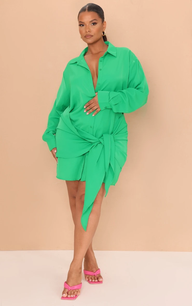 Dare to stand out from the crowd in this statement dress. Featuring a bright green material with long sleeves, button fastenings and a tie front design. Wear with heeled mules and your fave accessories to earn some serious style points.