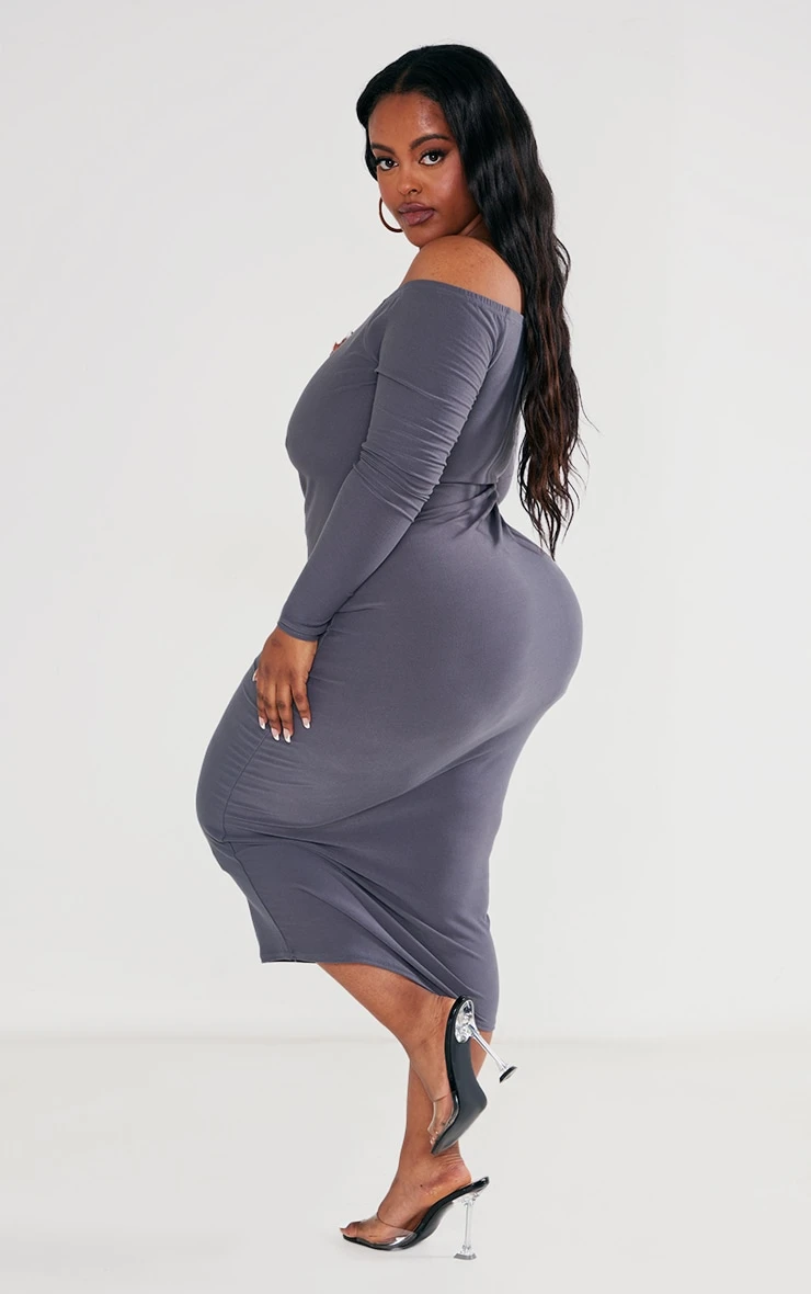 This plus charcoal soft touch bardot bodycon dress is sure to keep your look simple and chic this season. It features a charcoal hue material with a figure-worshipping fit that is perfect for those upcoming occasions, what more could you ask for? It’s sure to keep things glam this season. For that perfect weekend-worthy combo pair with high heels, simple accessories and a shoulder bag and you will no doubt have all eyes on you.