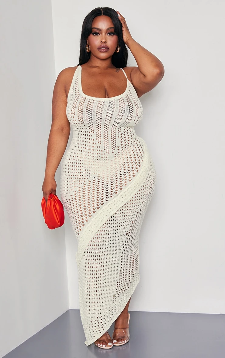 Enter the new season in style with this plus cream knitted low back maxi dress. Made from a cream hue knitted material with a dramatic low back design that we just can’t get enough of and a flattering maxi fit, what more could you want? Style this knitted dress with clear strap heels and gold accessories for a look that will have eyes on you wherever you go doll.