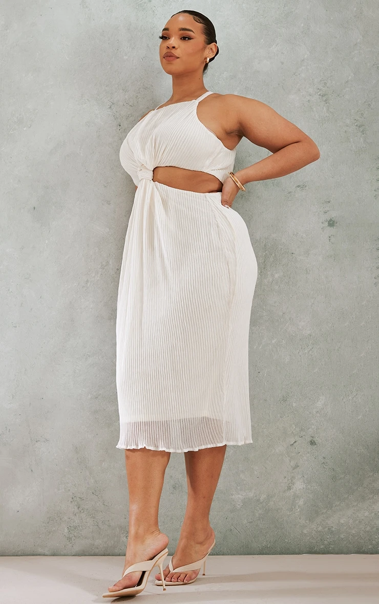 Your what to wear dilemmas have finally been found with this plus cream plisse knot detail midi dress. Brought to you in a cream plisse material with knot detailing and a midi length, what more could you want? This midi dress will have you earning all the style points doll. Shop the look and team this with your dreamy high heels and accessories for a look like no other.