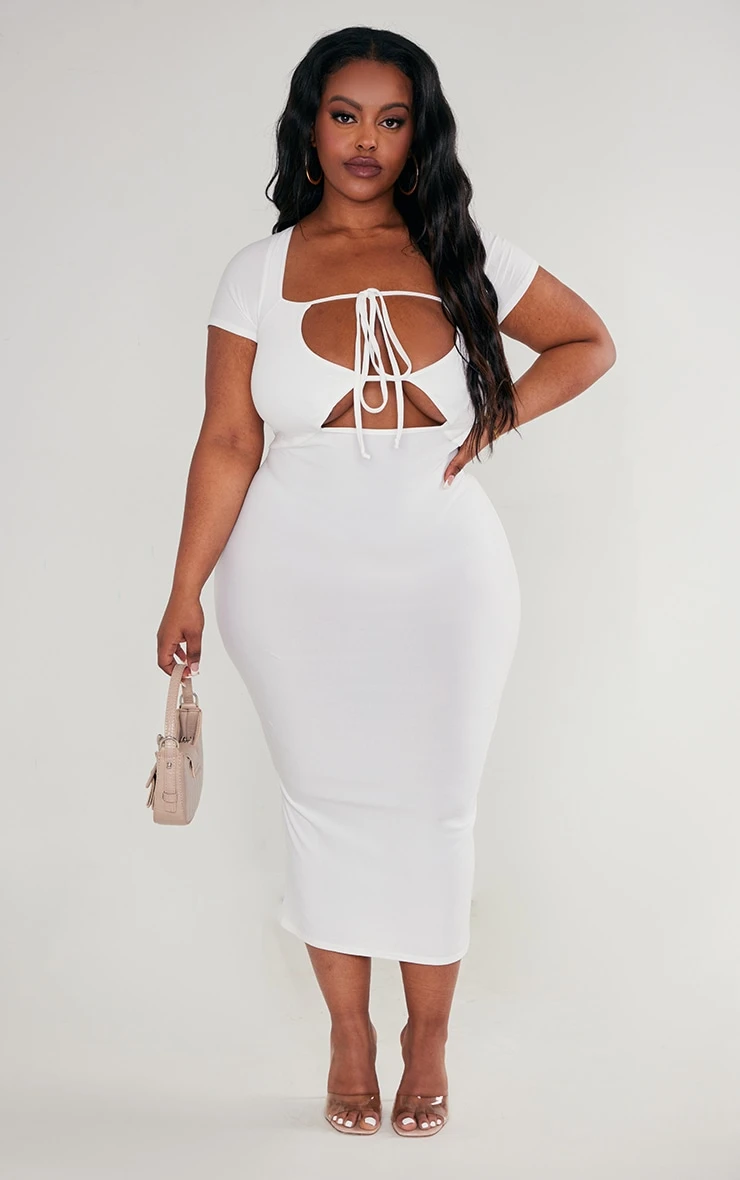 Take your weekend look to new heights with this cream soft touch jersey cut out bust midi dress. Brought to you in a cream soft touch jersey material with a cut-out busy and a midi length, how could you say no? This midi dress is everything we’re loving for your weekend wardrobe doll. To complete the look add your dreamy high heels and accessories for a look that all the dolls will love.