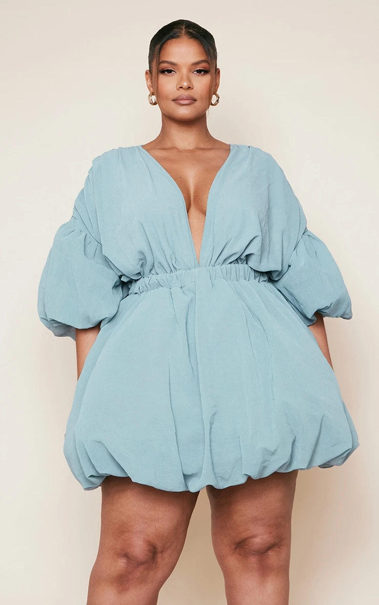 This plus dusty blue textured puffball shirt dress is here to banish any of your what to wear dilemmas. Brought to you in a dusty blue textured material with puffball sleeves and an extreme V neckline, we can’t get enough. From start to finish this plus shift dress will have you looking totally on-trend. For a next-level look simply style with high heels and gold accessories. It’s a yes from us doll.