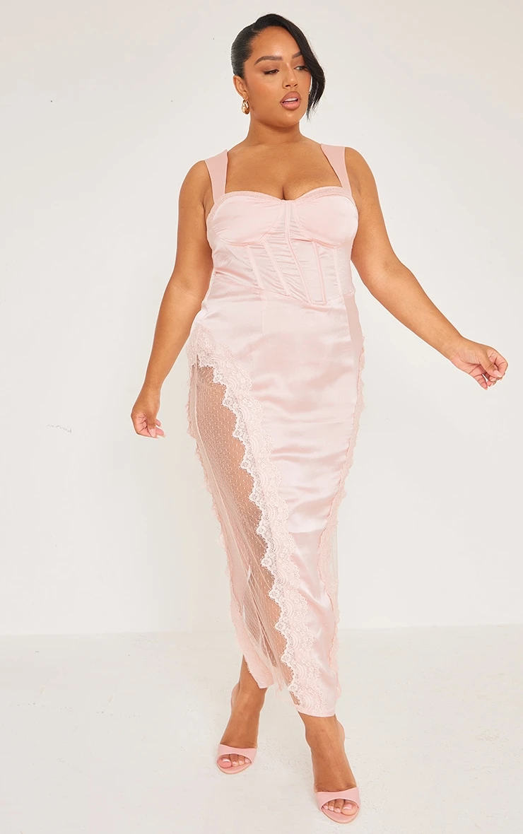 This plus dusty pink lace trim corset midi dress is all you need to have heads turning this season. Brought to you in a dusty pink material for a feminine vibe we are loving. With a lace trim detail and corset design, you will be showing off your figure in all the right places. Team with your highest heels and some gold hoops to finish off the look we are loving.