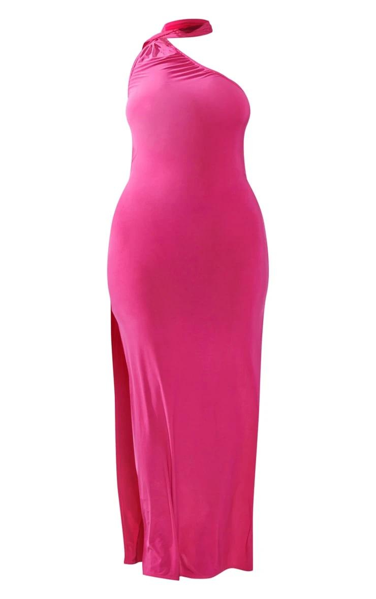 Got an upcoming special occasion in the diary doll? Then this plus hot pink slinky choker drape detail maxi dress is just what you have searching for. With a hot pink slinky material, a choker neckline, and drape detail, how could you say no? This plus maxi dress will make sure you stand out from the crowd doll and get everyone talking. Complete this super dreamy look with clear heels and gold accessories. What’s not to love?