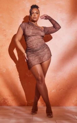 We’re obsessed with this plus light brown floral print mesh asymmetric bodycon dress for your weekend wardrobe doll. Brought to you in a brown floral print mesh material with an asymmetric hem and neckline as well as a one-sleeve design, what’s not to love? This plus bodycon dress is sure to steal all the stares no matter what your weekend plans are. Team with clear heels, a mini bag and shades for a look that will turn heads for all the right reasons.