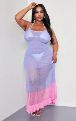 Brighten up your new season wardrobe with this plus lilac contrast knitted maxi dress. Made form a dreamy lilac hue knitted material with a contrasting design and a flattering maxi fit, this plus dress is sure to make you stand out from the crowd. Style seamlessly over your fave bikini for a look that is perfect for your next vacay doll. Just add clear strap heels and gold accessories for a flawless finishing touch.