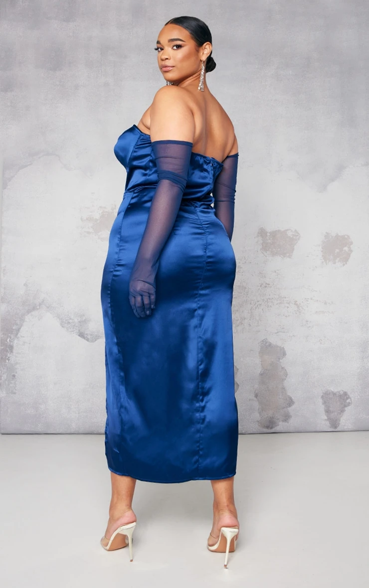 This ultra-luxe midi dress is sure to be your glam go-to. Featuring a navy satin material with a corset design and a figure-flattering fit, we are in love. Pair with high heels and statement accessories to tie the whole look together.