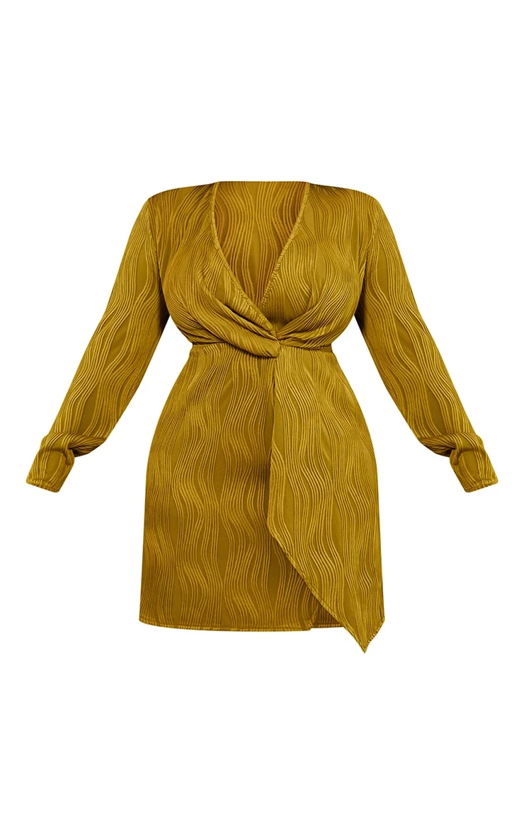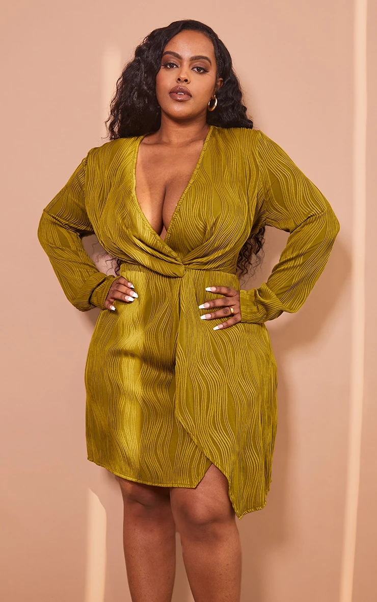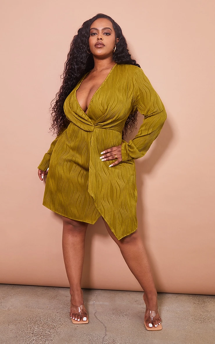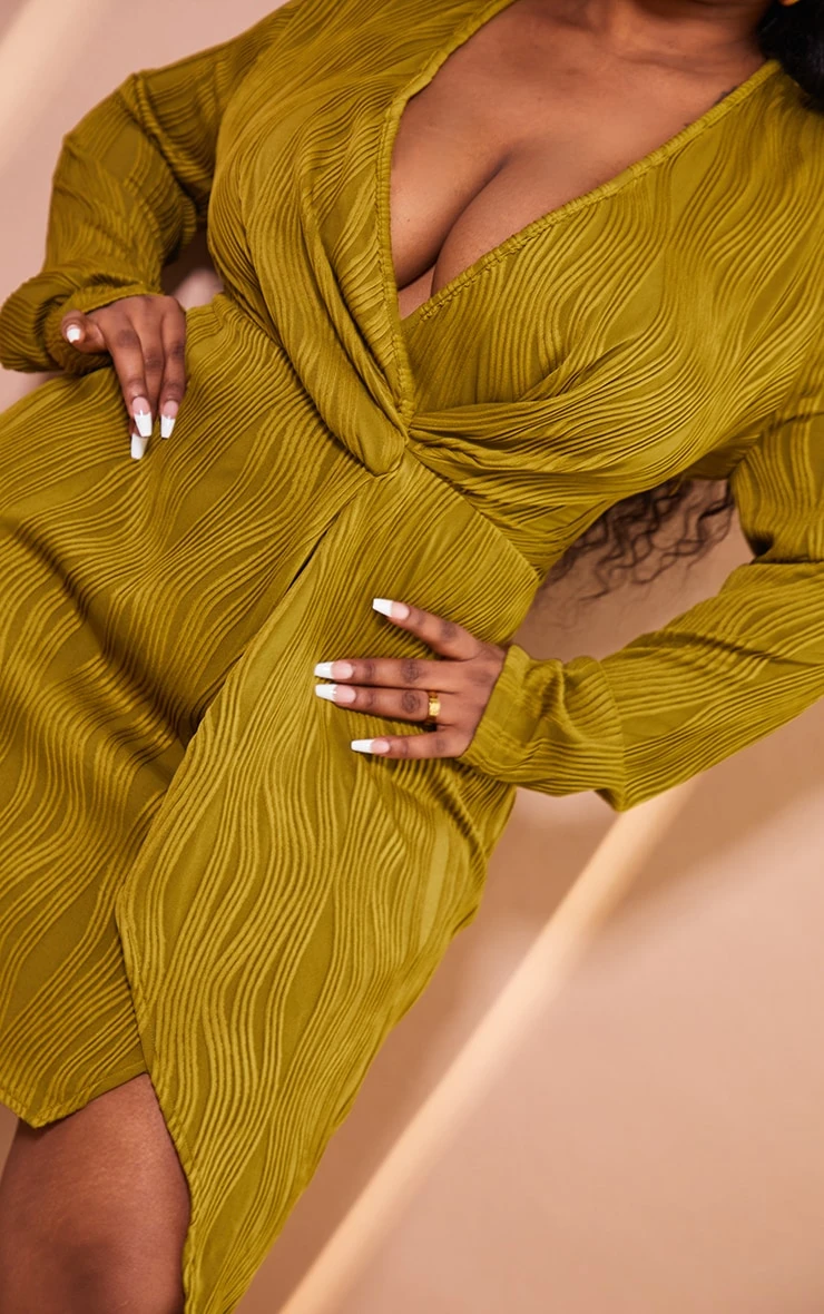 Amp up your weekend wardrobe with this dress doll. Featuring an olive plisse material with a front wrap design and a figure-skimming fit, how could you say no? Effortlessly style with clear mules, a clutch bag and simple accessories to earn some serious style points.