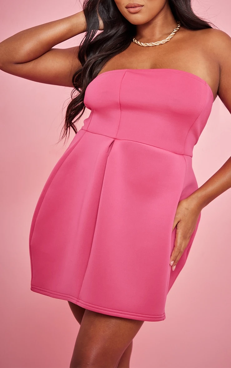 Get ready to look all kinds of glam in this unreal plus pink scuba bandeau shift dress. Whatever your plans you’re sure to be at the centre of attention in this dreamy piece. With a pink scuba material, a bandeau design and a shift style, how could you resist? Style with clear slip-on heels and your fave statement accessories for a look that is sure to show off your glow, it’s a yes from us.
