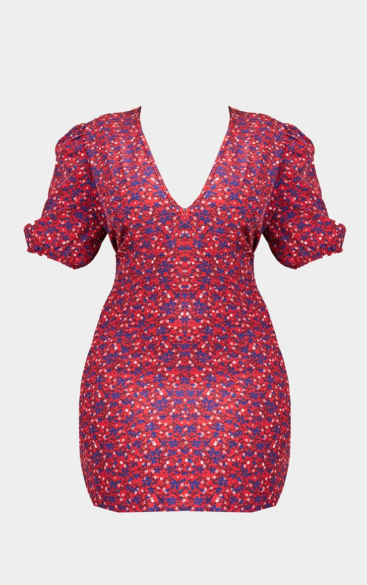 Give into florals this season with this dreamy tea dress. Featuring a red floral print material with puff sleeves, a V-neckline and a flattering fit, it is perfect. Team with gold hoops and white lace-up heels for a fresh feminine finish.