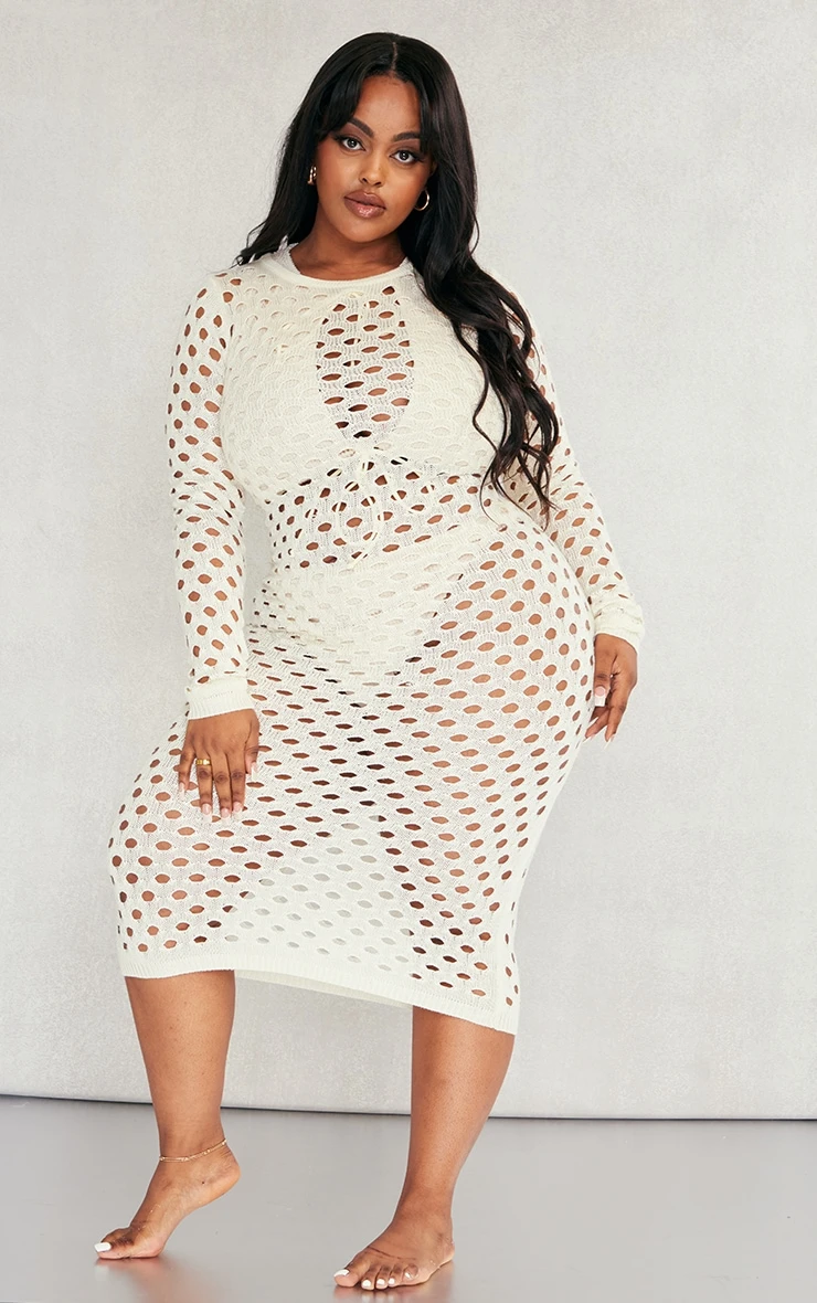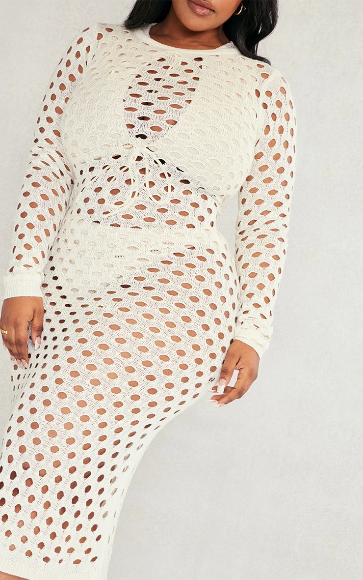 Give your new season wardrobe an effortlessly chic upgrade with this plus stone circle knitted beach dress, you’re sure to be at the centre of attention in this dreamy piece. It features a stone hue circle knitted material with long sleeves and a figure-flattering fit, how could you not be in love? Wear with your fave bikini, heels and bold accessories for a look that will have you earning all the likes it’s a yes from us.