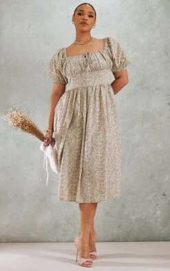 This plus taupe ditsy floral puff sleeve midi dress is sure to solve all of your weekend wardrobe dilemmas doll. Brought to you in a neutral taupe hue material with a dreamy ditsy floral print and a dramatic puff sleeve design, how could you not fall in love with this midi dress doll. Style with heels and just add your staple gold accessories to complete the look that is sure to have everyone looking your way doll.