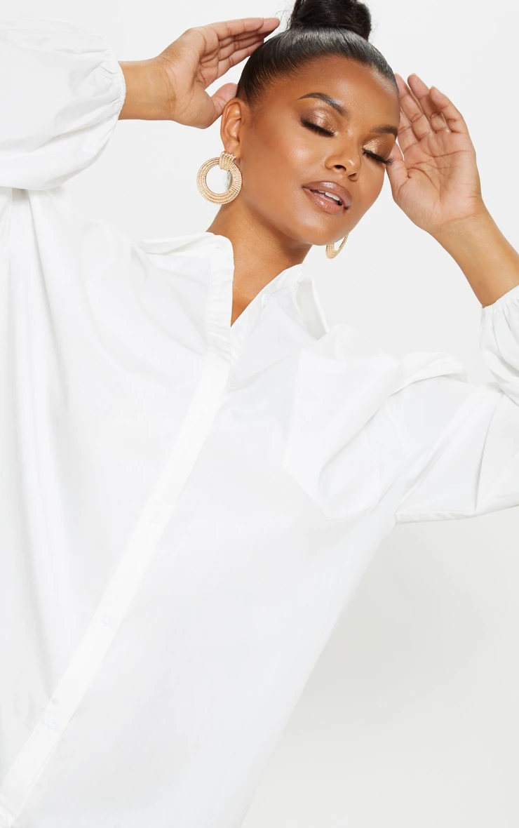 A white shirt dress is a staple for any occasion and this design is everything we are loving. Featuring a white material with an oversized fit and puff sleeves, wear this dress with strappy heels and complete the look with a mini bag.